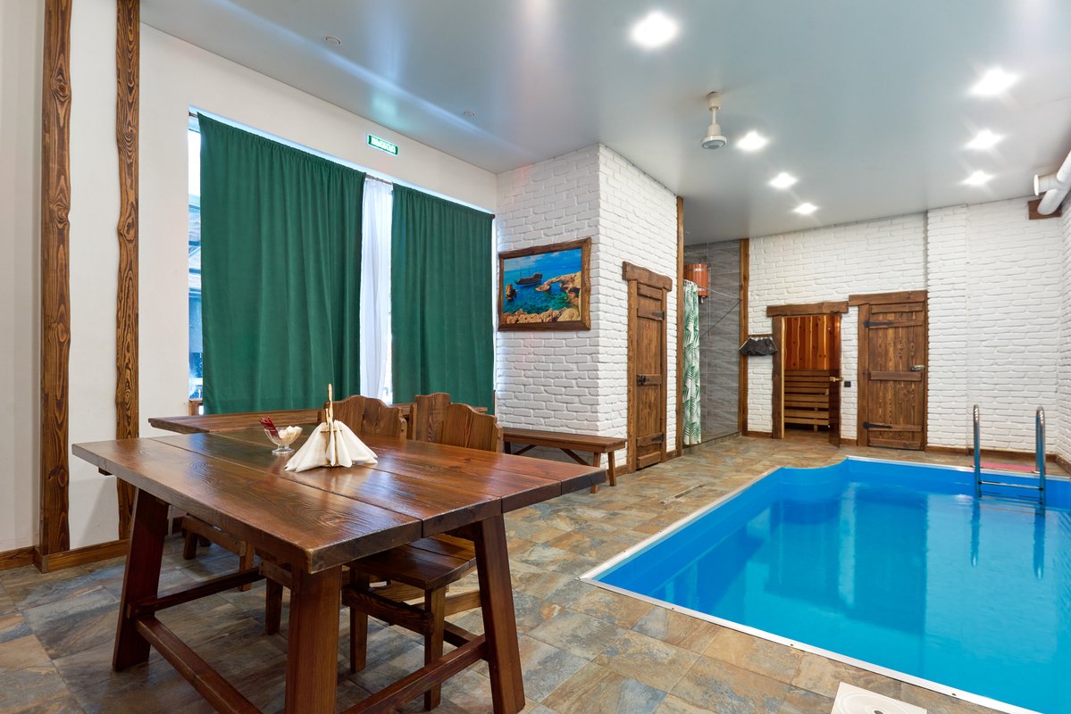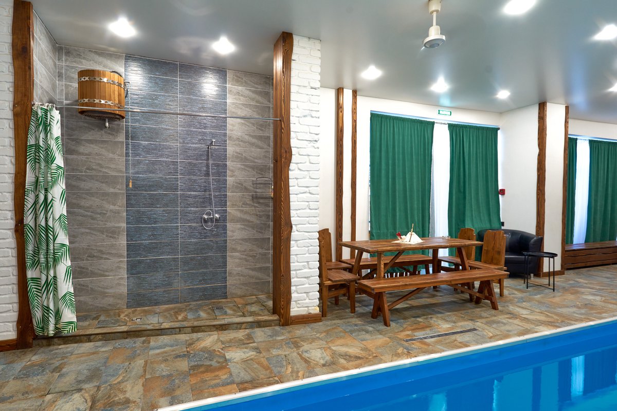 Преимущества: Чисто,теплый бассейн,жаркая парная.